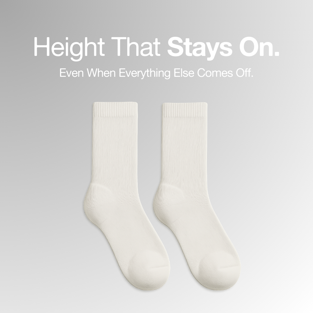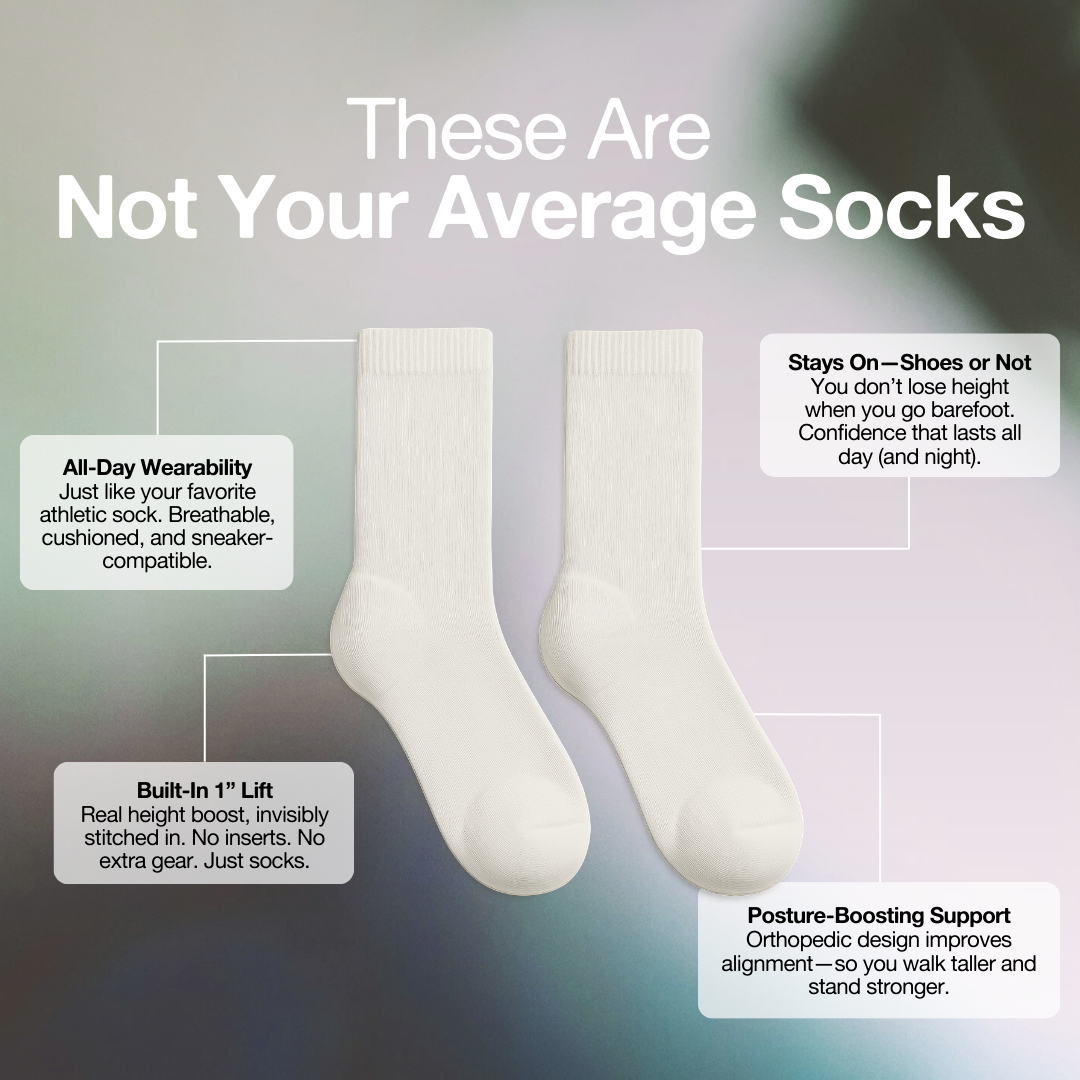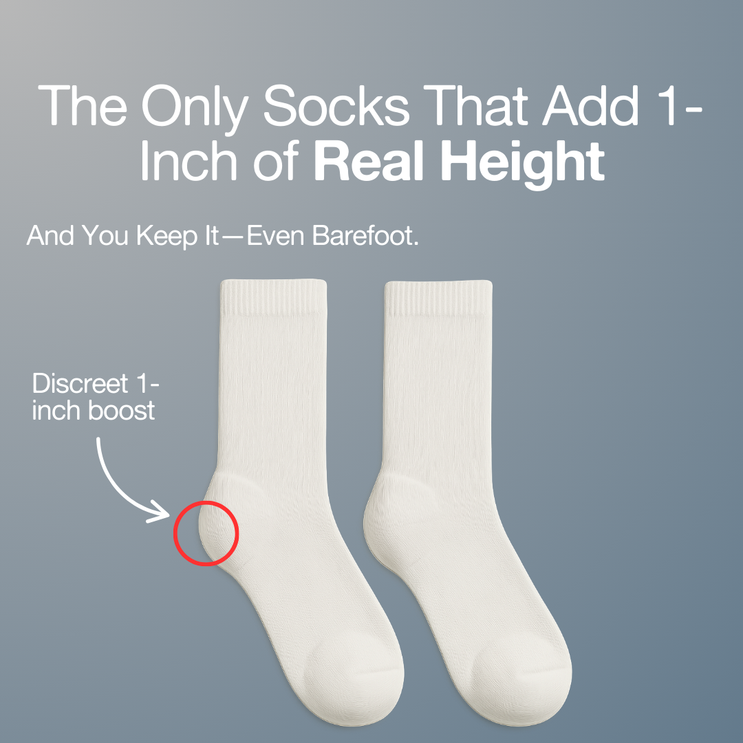 Unlike insoles or elevator shoes, Magic Socks keep your height boost even when your shoes come off—so your presence never dips, no matter where you are.